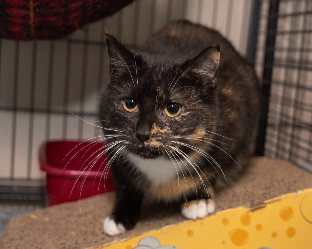 Ta trzykolorowa piękność trafiła do naszej fundacji w środku mroźnej zimy, razem ze swoim rodzeństwem i kocimi mamami na kastracje.