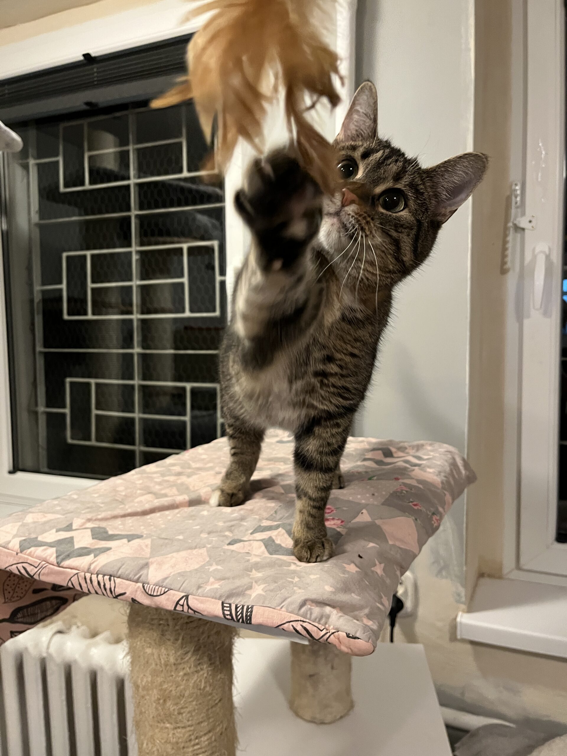 Fifi to kontaktowa kicia, która obdaruje swojego nowego opiekuna mnóstwem zainteresowania i miłości. Nieśmiało zagaduje i zaczepia wszystkich, którzy się kręcą w pobliżu. Czasem lekko spłoszona na chwilę ucieknie żeby po chwili wywalić brzuszek do głaskania. Szuka opiekunów, którzy odwzajemnią to uczucie i dadzą jej czas na wspólne poznanie się 🙂