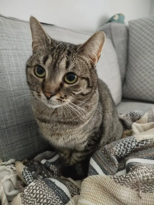 Jeżynka to wesoła pieszczoszka, która lubi kontakt z człowiekiem. Do nowych kotów musi się przyzwyczaić, ale powoli relacje z nimi stają się dobre.