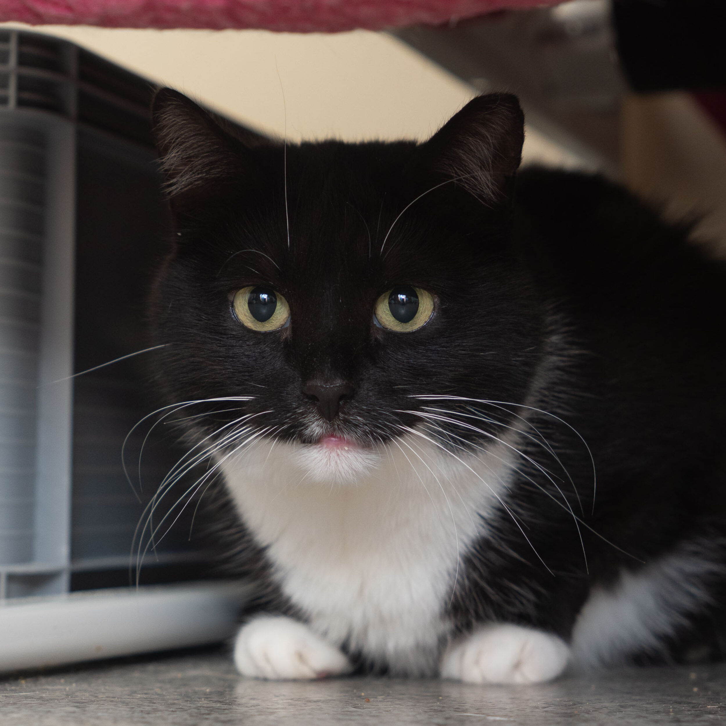 Killa to urocza, kilkuletnia kotka o umaszczeniu pingwinka. Choć jest nieśmiała, w odpowiednich warunkach pięknie rozkwita. Potrzebuje spokojnej osoby, która da jej czas i przestrzeń, by zaufała. Gdy usiądziesz cierpliwie obok, Killa odwdzięczy się – podejdzie po smaczki i pozwoli się pogłaskać.