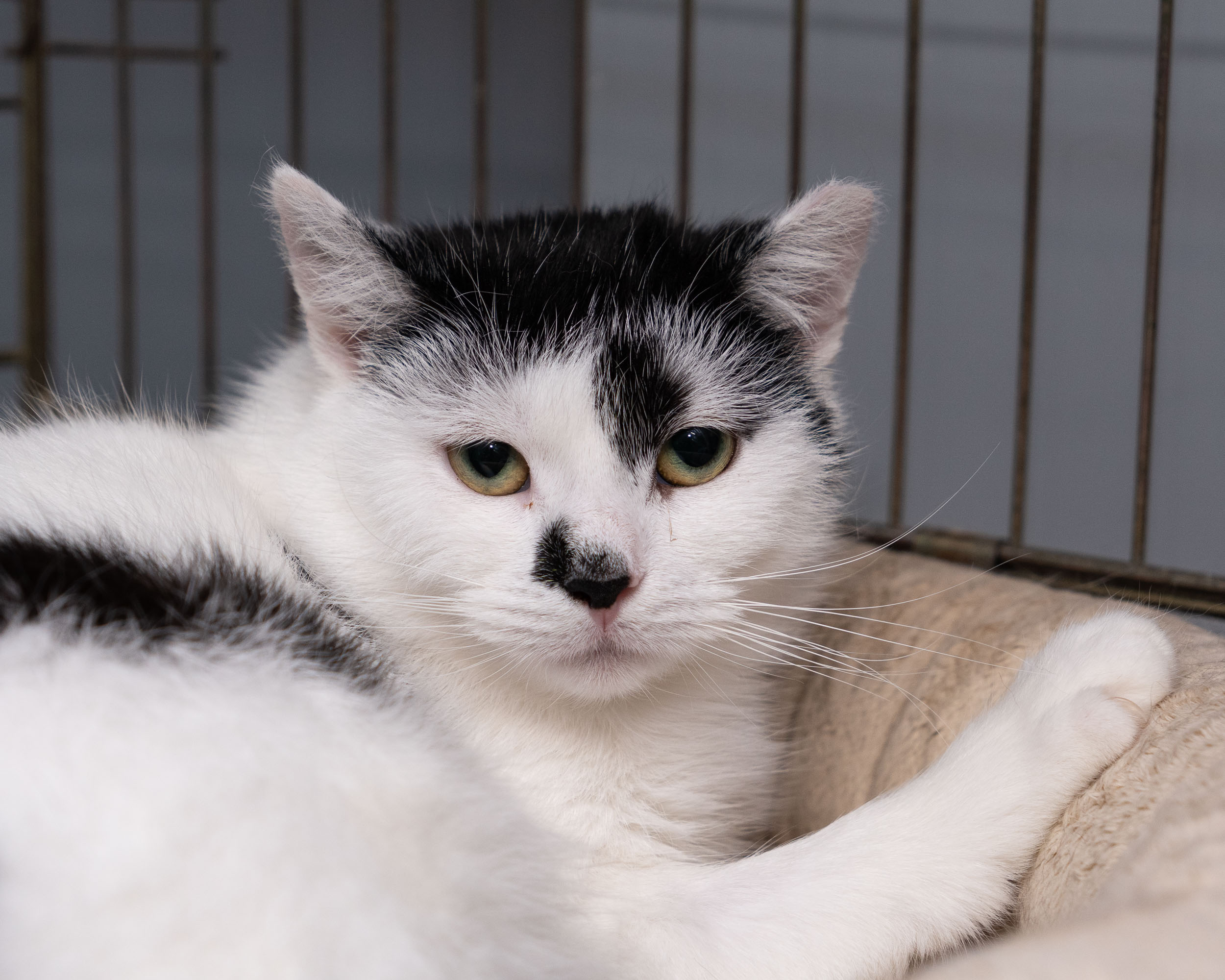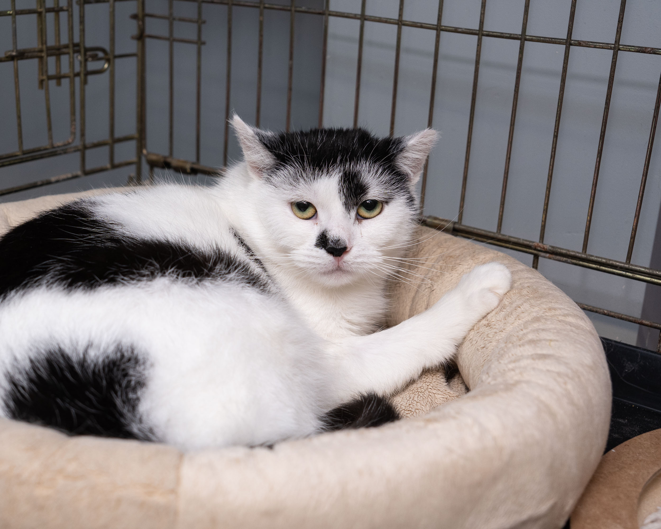 Literka to młoda kotka, która przez długi czas pojawiała się niespodziewanie na podwórku naszej karmicielki. Była bardzo ostrożna, ale z czasem zaufała na tyle, że udało się ją złapać. Tak trafiła pod opiekę Fundacji Kłębek, gdzie przechodzi socjalizację i uczy się bliskości z człowiekiem.