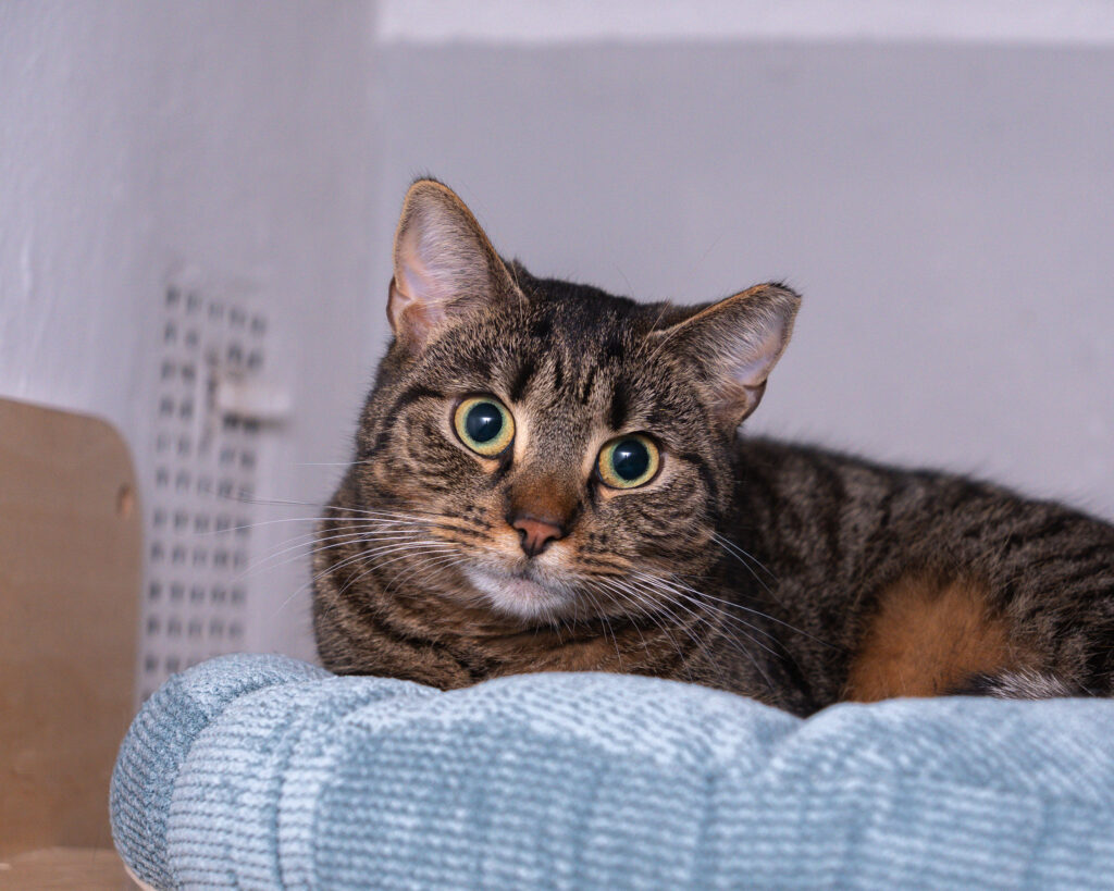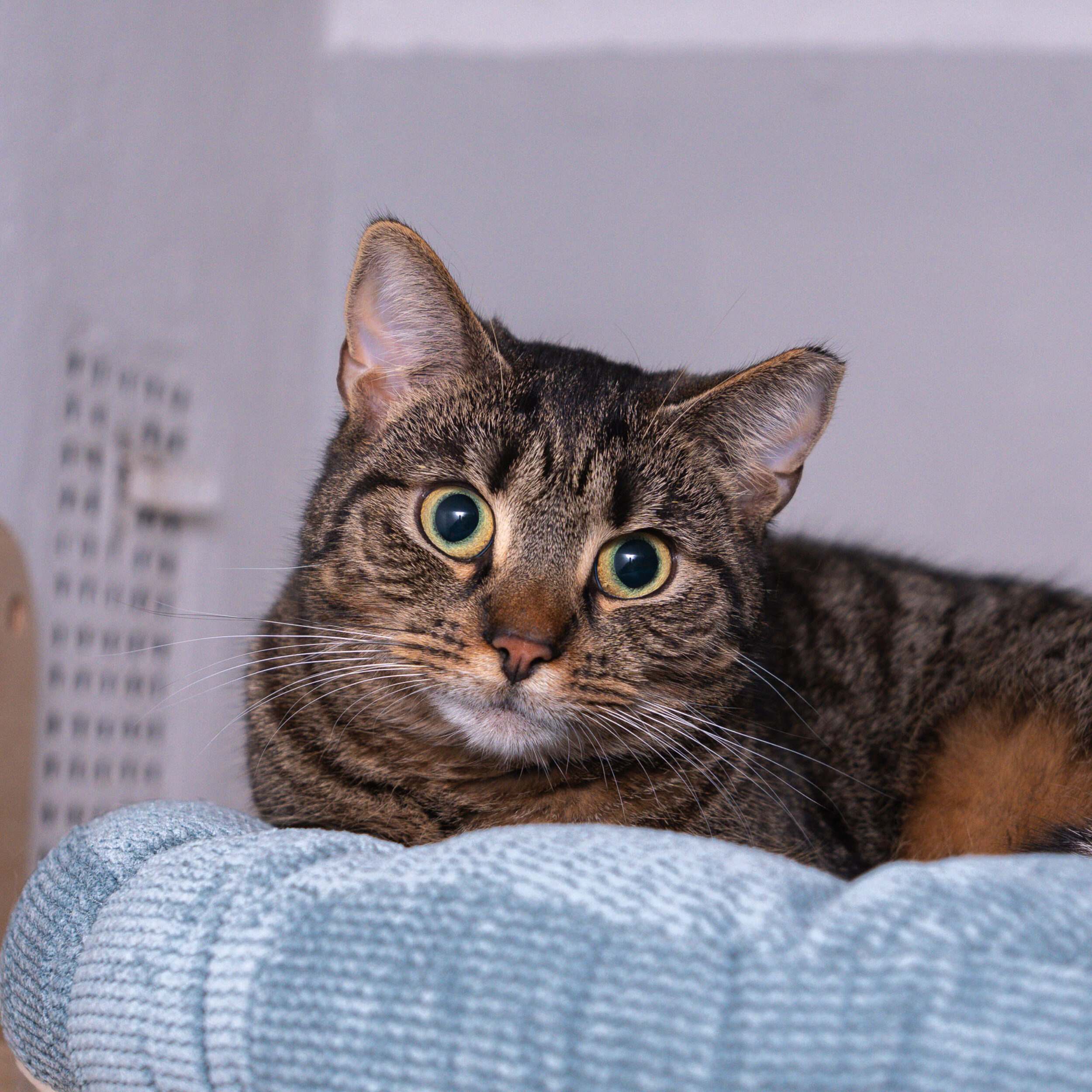 To delikatna, spokojna kotka, która nie pcha się na pierwszy plan – raczej obserwuje świat z boku, szukając swojego miejsca wśród innych kotów. W kociarni trochę się gubi, ale w sercu marzy tylko o jednym: o spokojnym domu i człowieku, który da jej poczucie bezpieczeństwa.